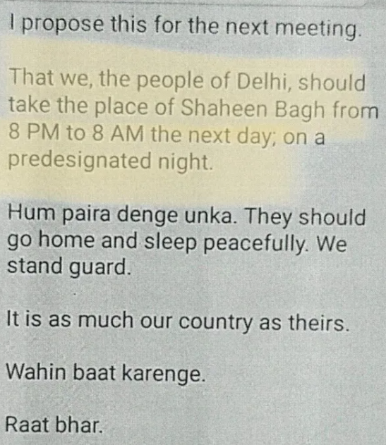 In that same message, “PC” also proposed mobilizing people to take to the streets and protect the Shaheen Bagh protest site.