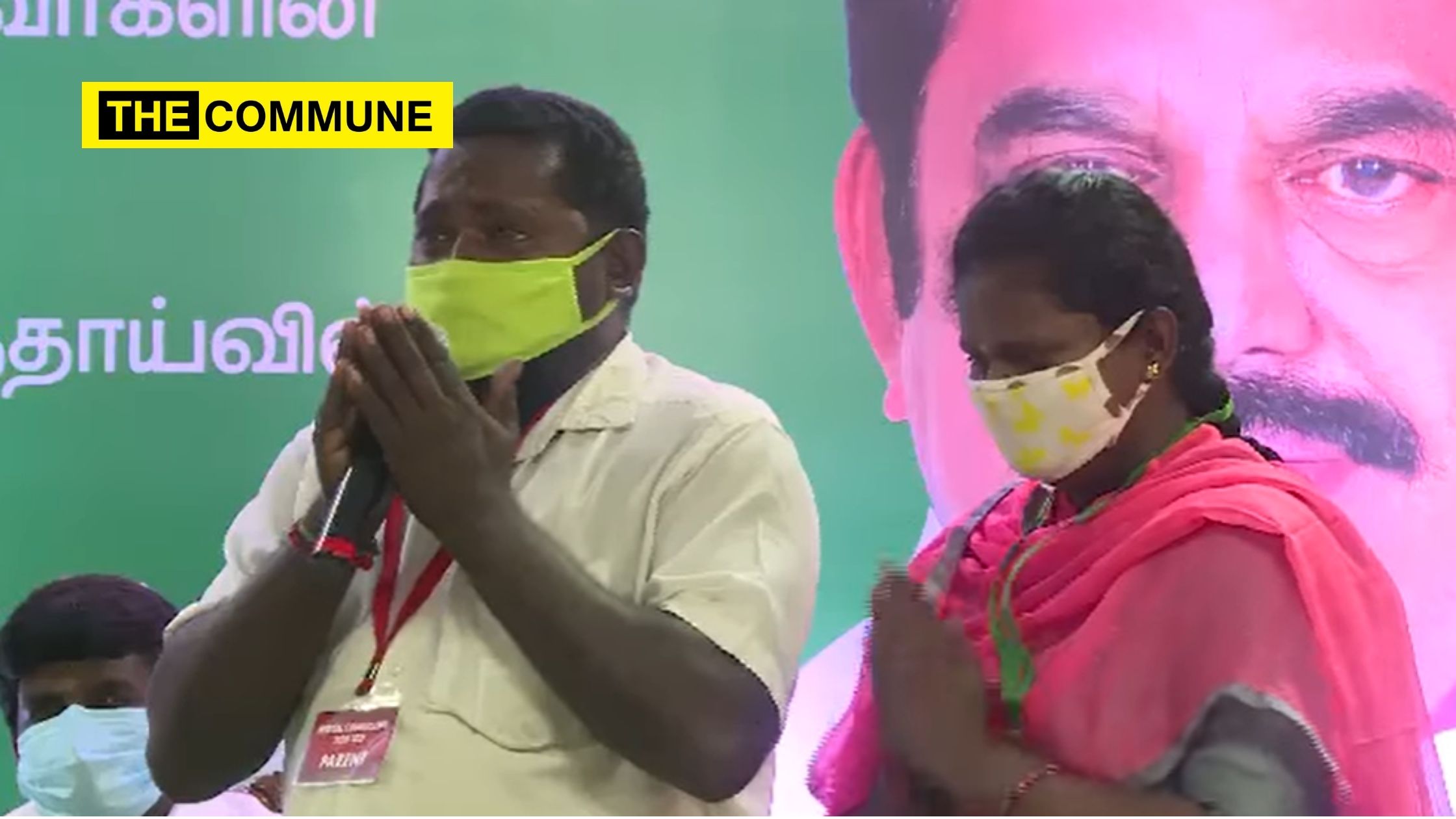 Archana, daughter of Sakthivel, who works as a daily wage labourer at Nagaiah Kottai in Dindigul broke down in tears on the stage and said “I am at a loss for words.. I was very worried about making my daughter a doctor as she was in government school. Thanks to the 7.5% quota she is now a doctor.. There is no doctor from my society.. I am thankful to the Chief Minister who like a God has made by daughter a doctor..” falling at the feet of the Chief Minister.