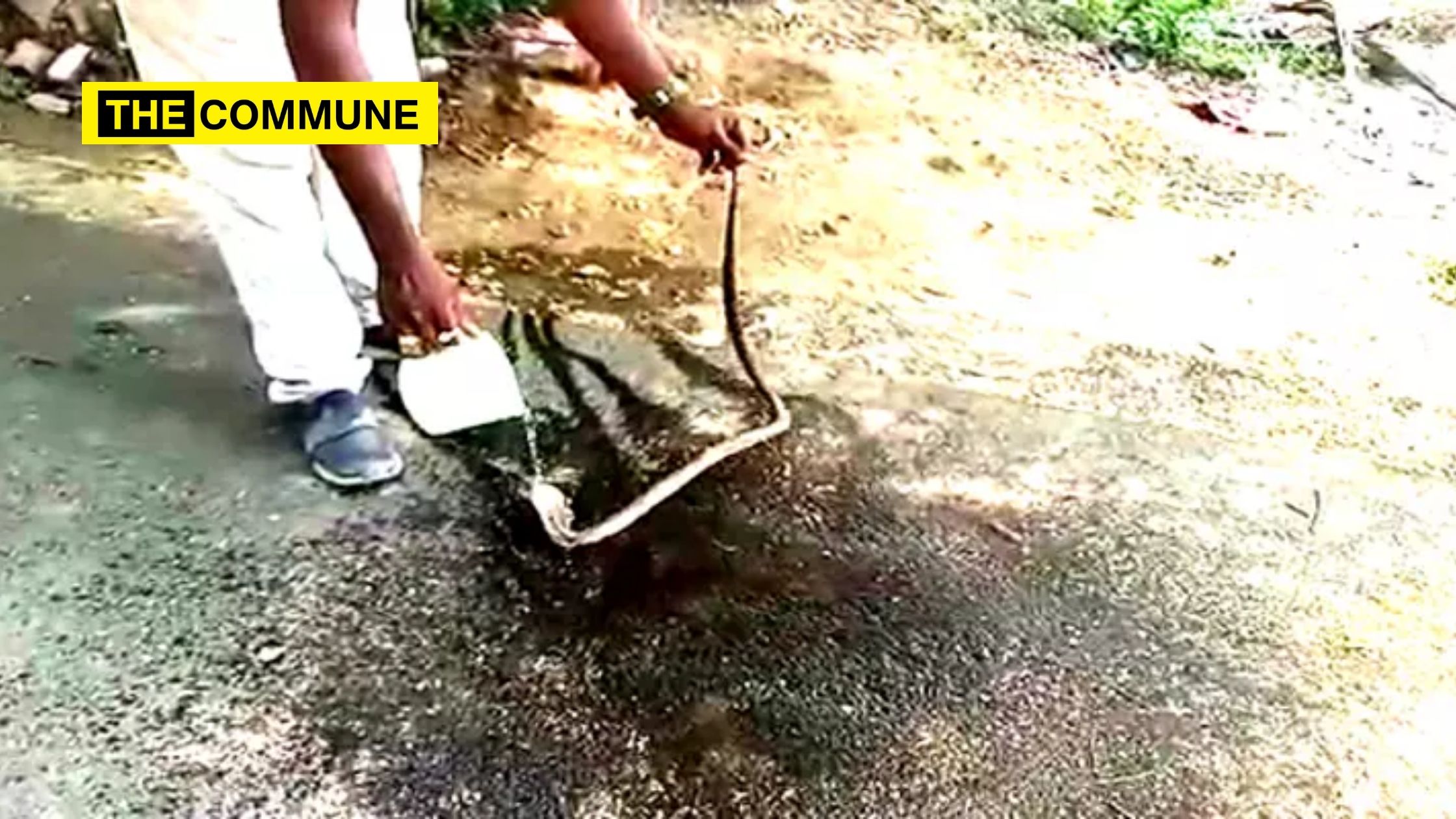 Construction workers had gone to the hut on Friday to pick up the cement bundles that were inside. While doing so, they found a snake that was lurking amidst the bags. When the workers saw this, they screamed and fled the scene.