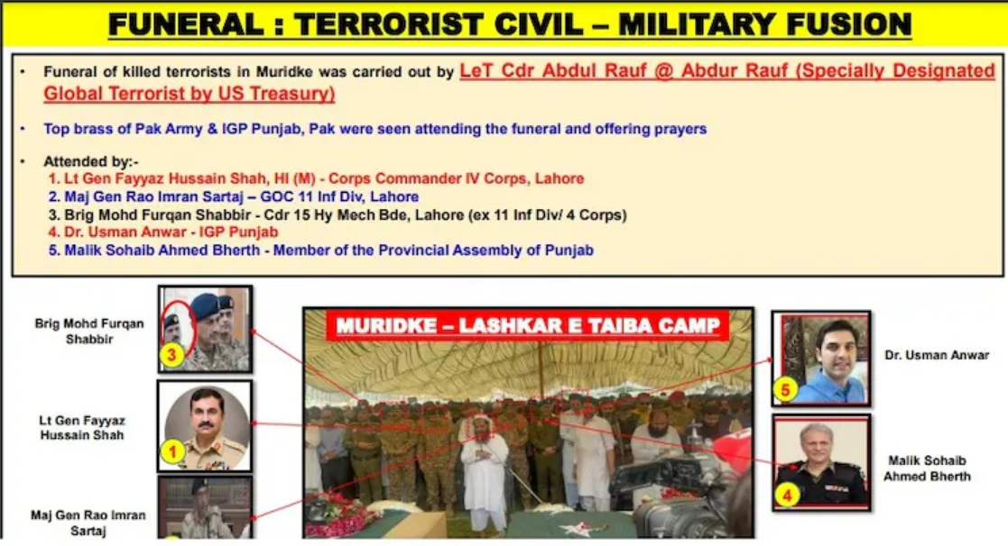 On Sunday, the Indian Armed Forces identified the Pakistani officials who were seen offering prayers at the funerals. Among those named were: