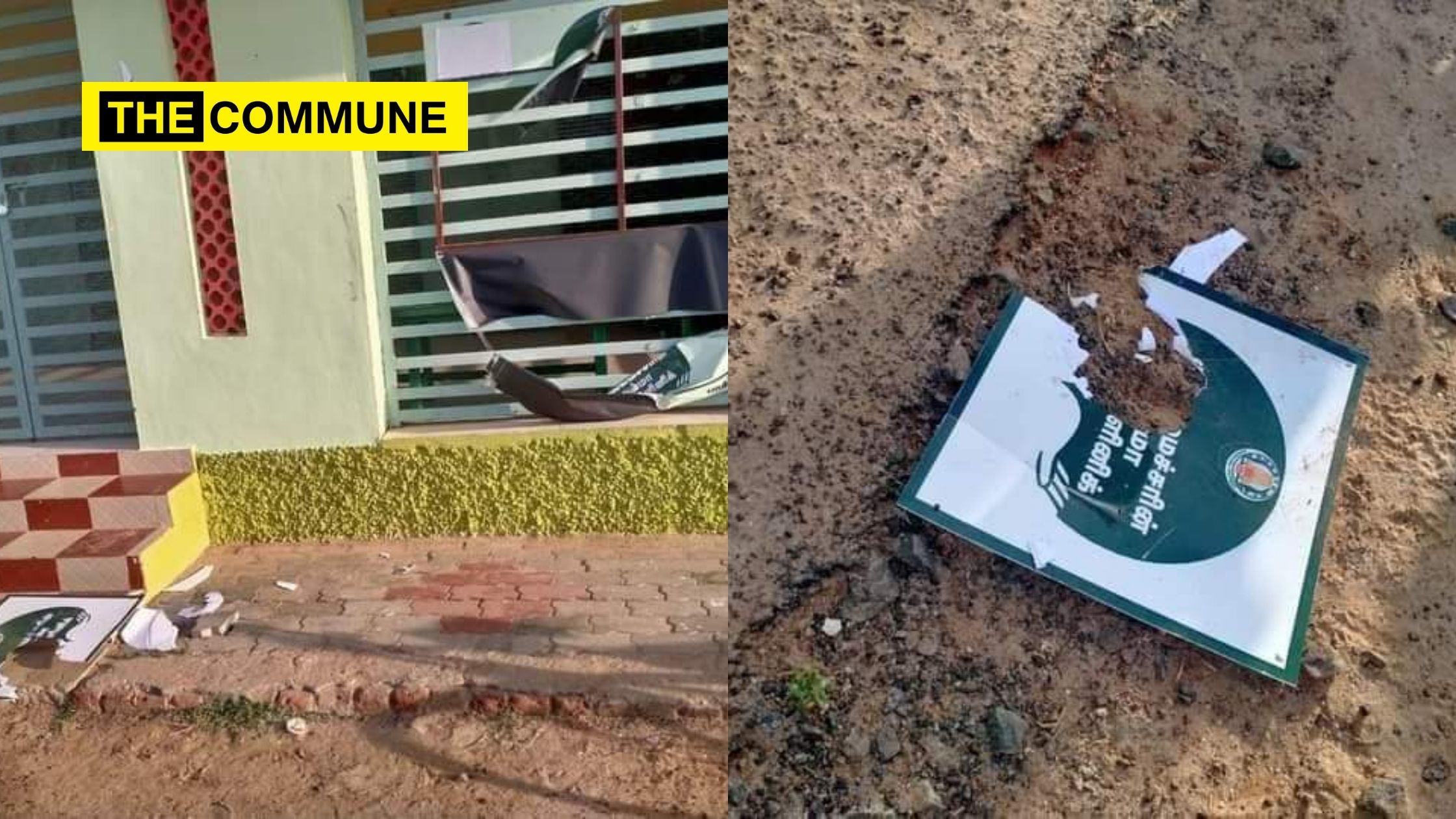 Some of the mysterious persons suspected to be DMK cadres have torn down the banners and vandalized the property. Pictures of torn name boards and damaged windows have been circulating in social media.