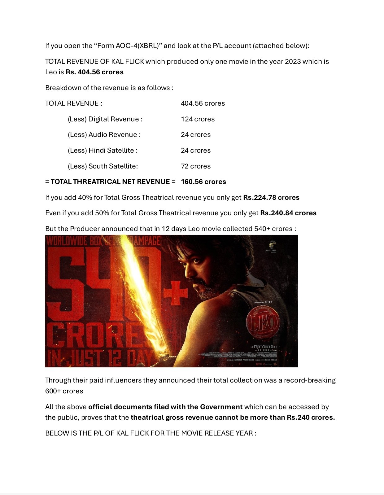 He further went on to say that if only 40-45% of gross collected comes to the producer and said that ₹600 crore of which ₹404 crores is the actual revenue earned by the producer.
