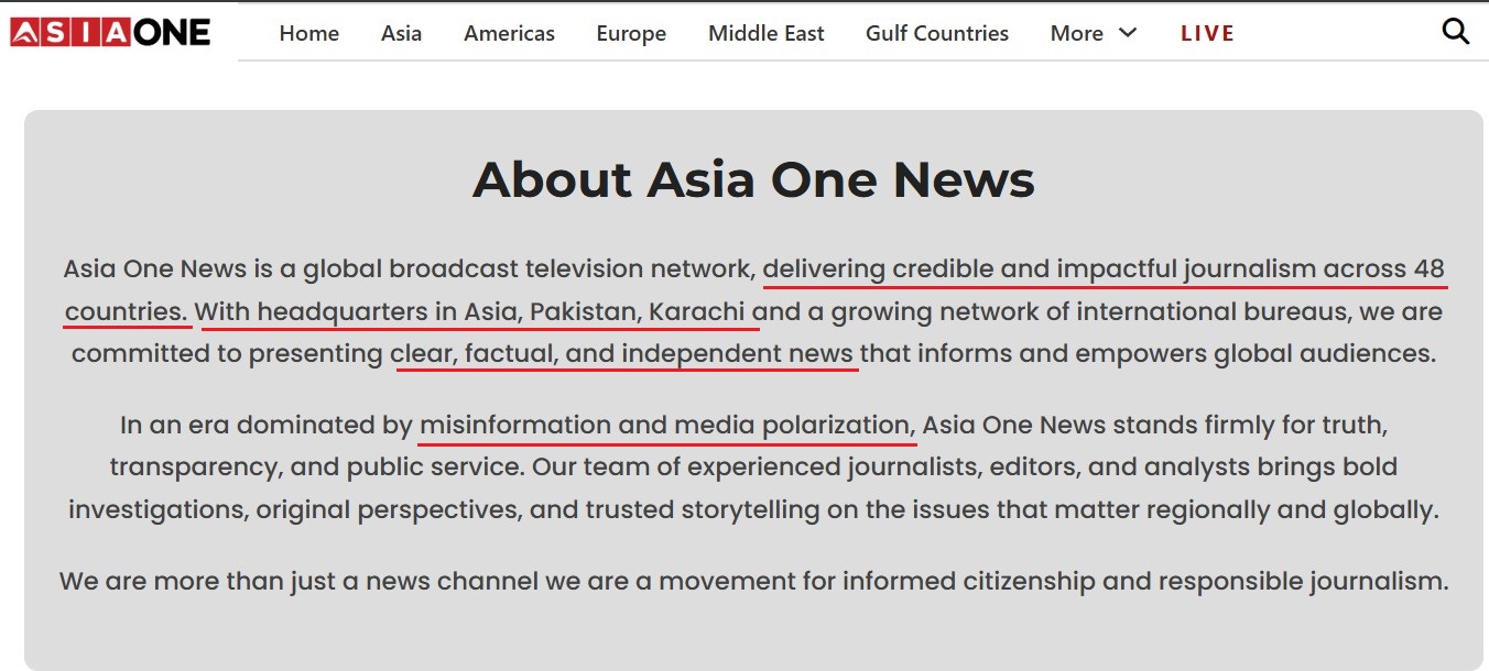 By mixing polished visuals with unverified claims and selective storytelling, the channel risks becoming a mouthpiece for geopolitical narrative manipulation rather than a legitimate media voice. As disinformation continues to rise in global conflict zones, AsiaOne may become just another cog in Pakistan’s expanding propaganda machinery, replacing accountability with narrative warfare.