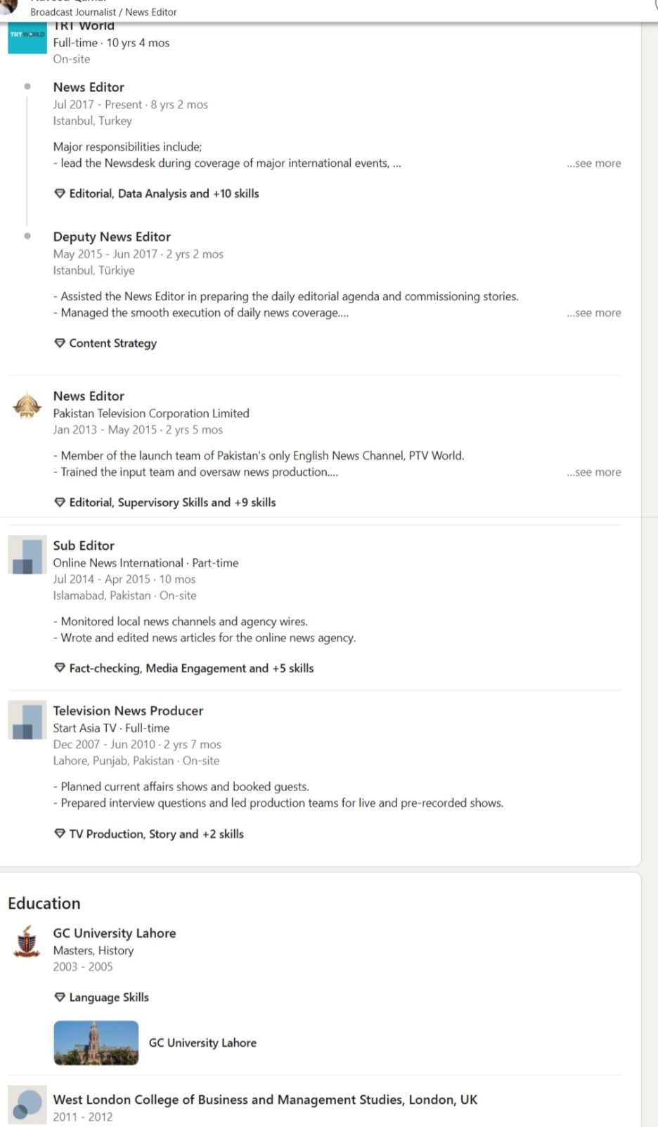 The channel claims to be Pakistan’s first English-language international satellite news outlet and is staffed by a mix of foreign presenters, mainly from Europe, the Middle East, and Africa.