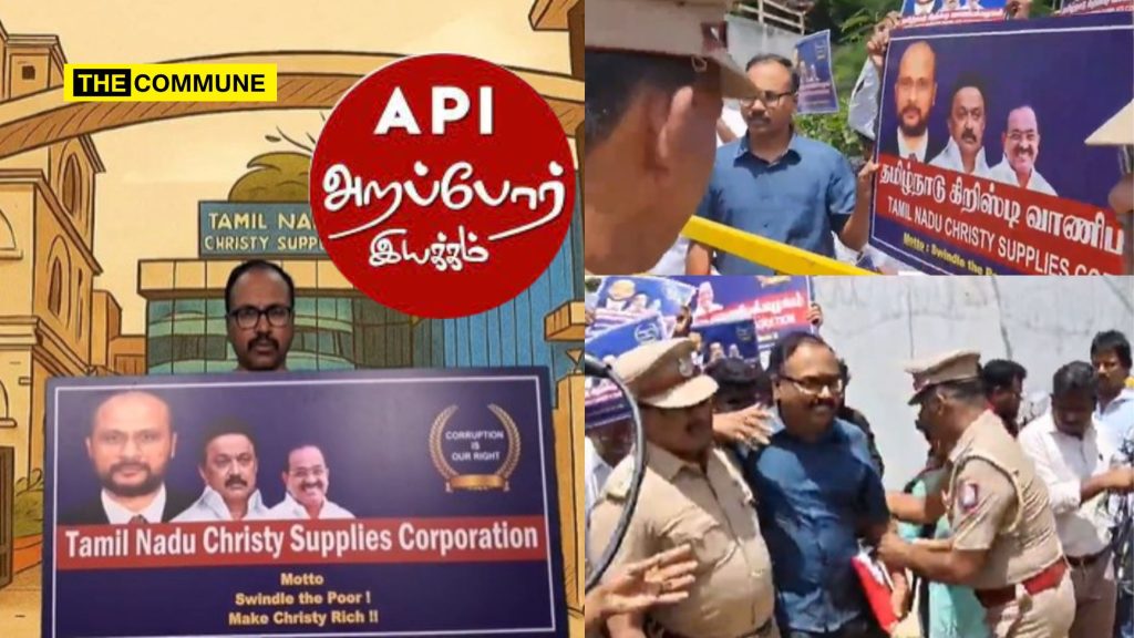 The Dravidian model government in Tamil Nadu has arrested Jayaram Venkatesan, convener of the anti-corruption NGO Arappor Iyakkam, along with several members of the organization, following their protest against alleged corruption involving the Tamilnadu Civil Supplies Corporation. The protest was symbolic, with activists demanding the body be renamed “Tamil Nadu Christy Supplies Corporation,” pointing to alleged favoritism and irregularities tied to the Christy Friedgram Group.