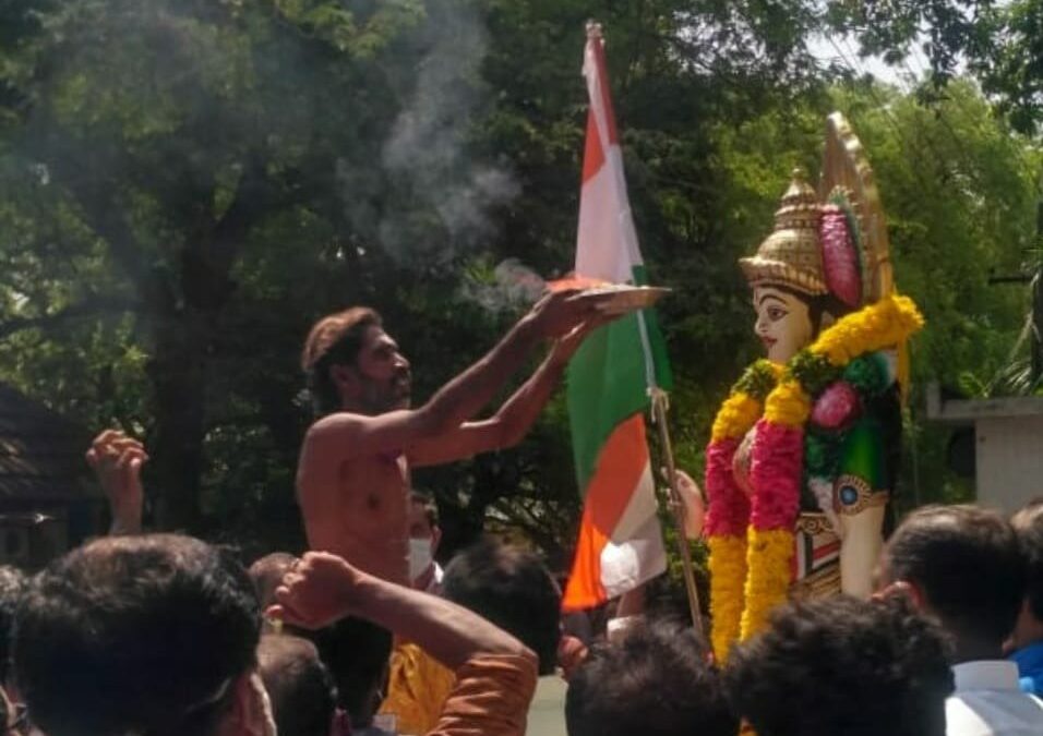 The statue of Bharat Mata was installed by a daily wage earner named Muthu Kumar at his ancestral temple who was then subsequently asked by the local police to remove the statue citing complaints from local Christians.