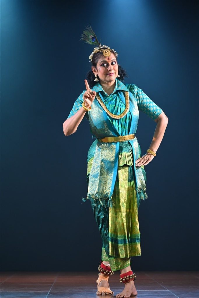 She is the founder of Arsha Kala Bharati, an arts school, and has also served as a research fellow with the Centre for Public Diplomacy & Soft Power. Over the years, her thematic solo productions have centred on Hindu scriptures; Gita Natyam is the culmination of that trajectory, an attempt to make the Gita accessible “chapter by chapter, value by value” as live Natya performance, interactive workshops, talk shows/lec-dems, educational films with animation, graphics, visual effects, stories, life lessons, natya & sangeeta, laya & more – all in unison, chapterwise as a sequel.