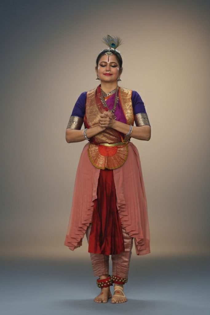 Pavithra Srinivasan’s artistic journey forms the backbone of Gita Natyam. Trained under many stalwarts, including Padma Bhushan The Dhananjayans and spiritually guided by Swami Dayananda Saraswati of Arsha Vidya Gurukulam, she describes her practice as a “lifelong tapasya” in Bharatanatyam, Carnatic music, and Vedanta.