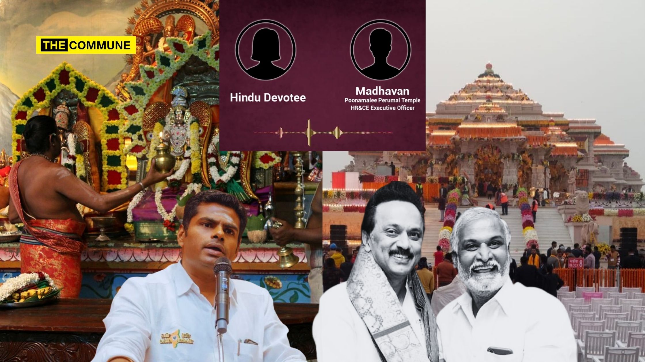 BJP Tamil Nadu President K. Annamalai has released an audio of a conversation between a Hindu devotee and the Hindu Religious & Charitable Endowments (HR&CE) Department Executive Officer of the Poonamalle Perumal Temple in which the latter confesses that there is a verbal order to prohibit celebrations marking the Ram Janmabhoomi Temple consecration ceremony.