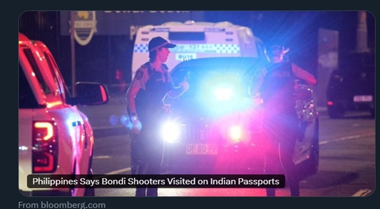 Bloomberg initially reported that the terrorists travelled to Philippines on Indian passports. This was their headline “Phillipines says Bondi beach father-son terrorists visited on Indian passports”