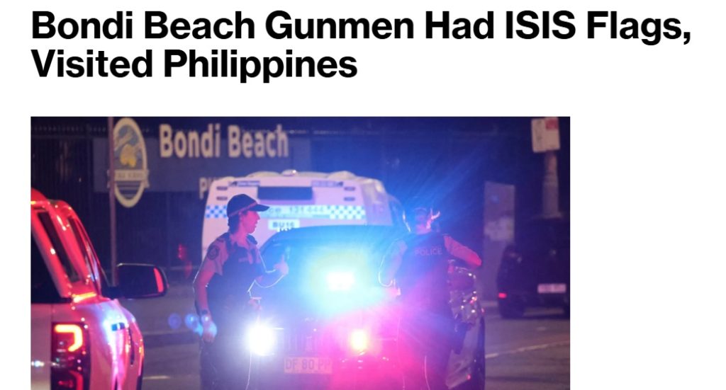 Inside the article, Bloomberg claims that “Sajid Akram, 50, was an Indian national and Australian resident, while his son Naveed Akram, 24, was an Australian national, a spokesperson for the Bureau of Immigration said Tuesday in a statement to reporters. They arrived together in the Philippines on Nov. 1 from Sydney and departed Nov. 28.”