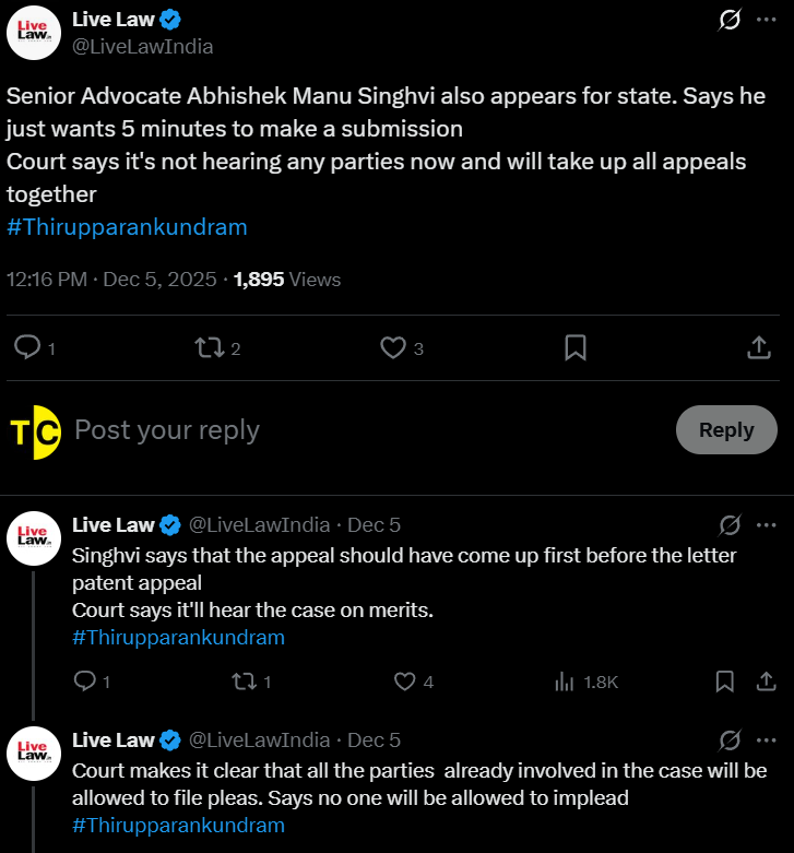 On December 3, Ravikumar filed a contempt petition, alleging deliberate defiance. Justice Swaminathan, visibly frustrated, summoned district officials and permitted the petitioner and nine associates to light the lamp themselves under police escort. When even this was thwarted, the court escalated: on December 4, it dismissed the state’s appeal and reiterated the directive, lambasting the administration for “nullifying” judicial authority.