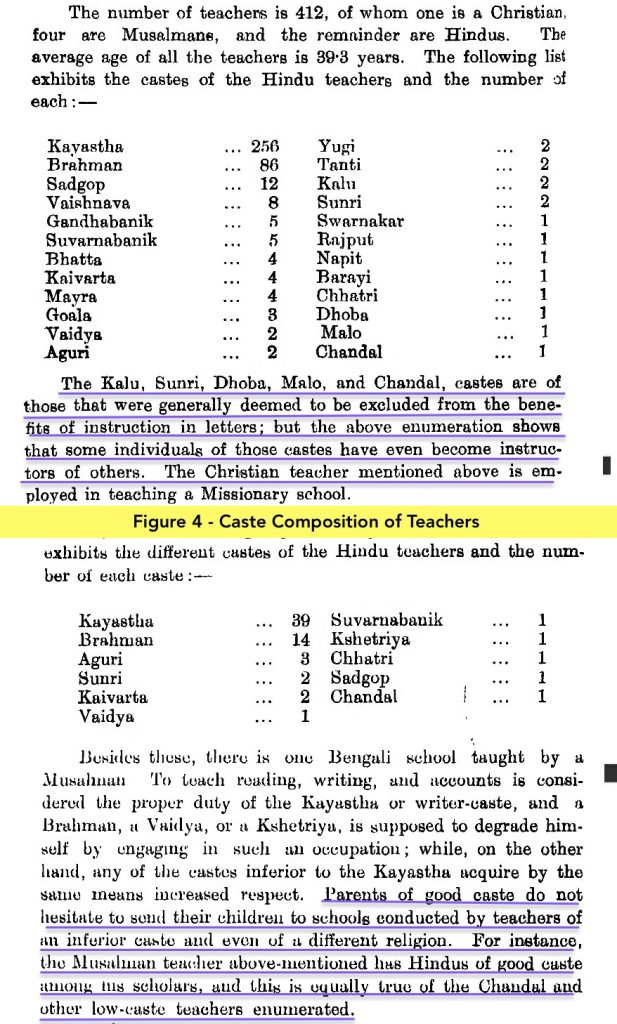 This directly undercuts the idea that “Brahminical Hindu” village schools were structurally designed to block so-called lower castes from learning.