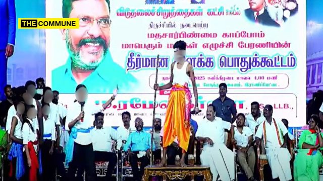 In yet another controversial move targeting the Brahmin community and Hindu religious traditions, the Viduthalai Chiruthaigal Katchi (VCK) has come under fire for featuring children in a politically charged skit at the recent Ranipet Resolution Public Meeting. Critics have condemned the act as a blatant use of minors in political and religious propaganda, raising serious ethical and legal questions.