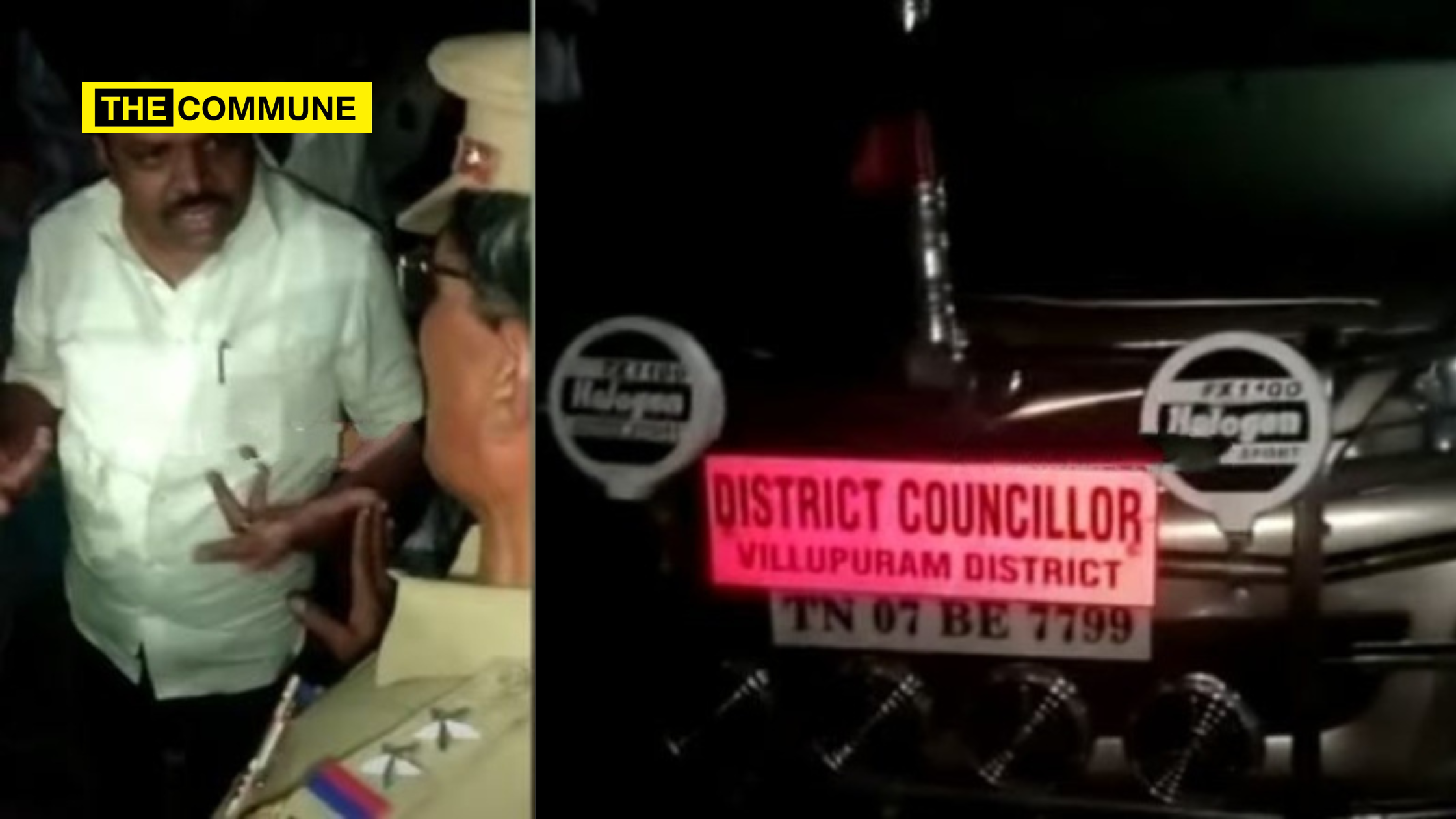 In Viluppuram, a DMK councillor parked his vehicle in the middle of the road, blocking traffic and causing a public nuisance to protest against another vehicle that overtook him.
