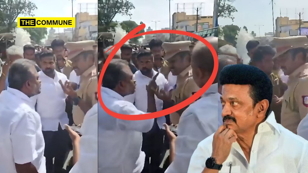 Police intervened to mediate and calm both sides, but tensions remained high. Upon hearing about the conflict, DMK district deputy secretary Kottai Abbas arrived at the scene and lashed out at the officers present. In a heated tone, he rebuked the sub-inspector, saying, “Are DMK members lunatic? Are you a rowdy? I’ll finish/destroy (tholachiduven) you off!! I will take off your shirt. Speak mindfully.”