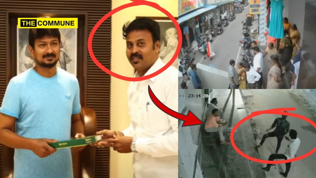 A CCTV video has surfaced showing DMK executive Rajan allegedly plotting to seize a clothing store in collaboration with a known criminal, sparking fear among the public.