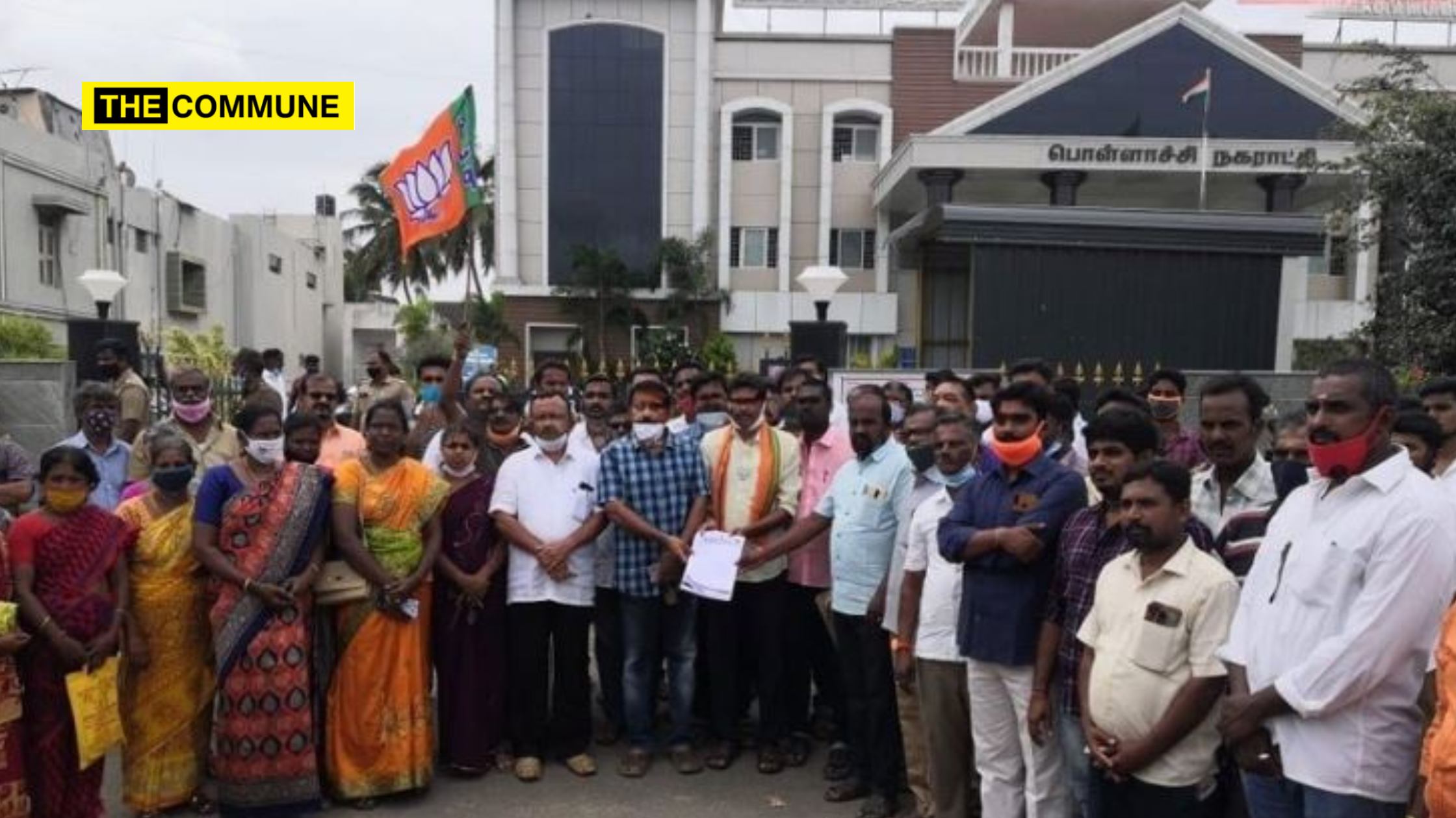 As an opposition party, the BJP, led by Pollachi town president Paramaguru, took to the streets to protest the property tax hike in the municipality.