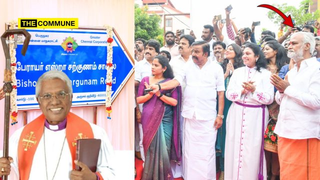 The DMK government has officially renamed Waddells Road in Kilpauk, Chennai, as ‘Archbishop Ezra Sargunam Road’, in honor of Ezra Sargunam the now-dead rabid Christian pastor who has made several provocative speeches against Hindus. The new nameplate was unveiled by DMK Minister Nehru during a formal ceremony accompanied by Hindu Religious & Charitable Endowments (HR&CE) Minister Sekarbabu, Chennai Mayor Priya, and DMK MLA Inigo Irudhayaraj.