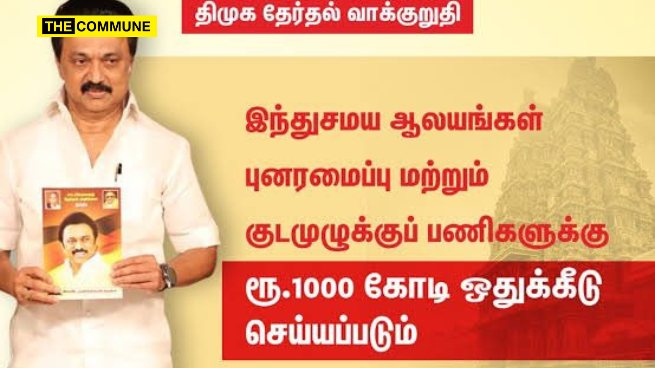 The data gathered from the Tamil Nadu budget for 2023 shows that the DMK’s election promise to allocate ₹1000 crores for temple renovations must be added to the lengthy list of unfulfilled election promises.