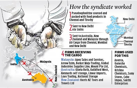 For those coming to this story fresh, here is the trail. The NCB arrested Jaffer Sadiq in March 2024 after a raid at the Delhi godown of his company Aventa yielded 50 kg of pseudoephedrine. Further investigation uncovered what investigators described as one of the largest drug trafficking operations run from Tamil Nadu: approximately 3,500 kg of pseudoephedrine – a key precursor for crystal methamphetamine – dispatched in 45 consignments to Australia, New Zealand, Malaysia, Dubai and other countries, with an estimated street value of over Rs 2,000 crore.