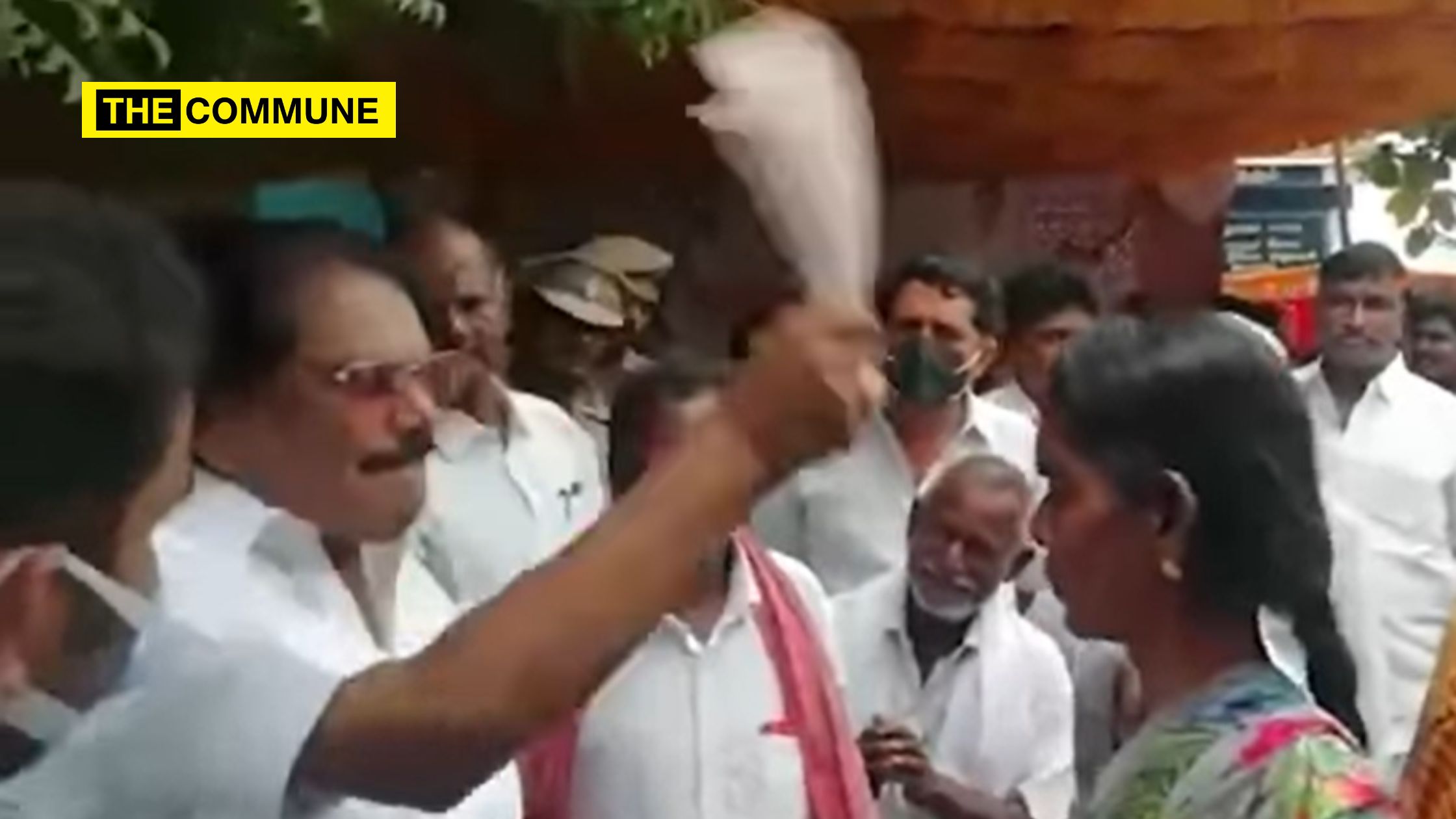In a video that has now gone viral, the DMK Minister can be seen hitting the woman with the same pettition paper that was given by her as she was lamenting her griefs and hardships.