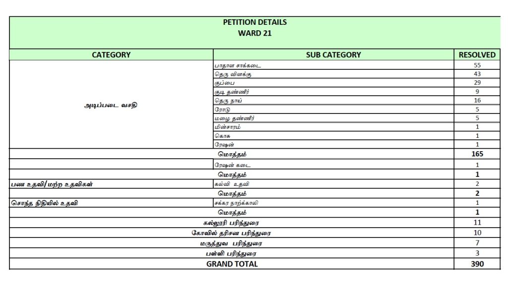 The ward-level complaint data mirrors this city-wide failure precisely. Of the 165 basic-needs petitions resolved in Ward 21 by PTR’s office, 55 were about underground drainage, 43 about streetlights, 29 about garbage, and 9 about drinking water – the four most elementary municipal services together accounting for 82% of all basic-needs petitions filed in the ward in 2026. The problems citizens complained about most were the ones entirely absent from PTR’s MLACD investment record.
