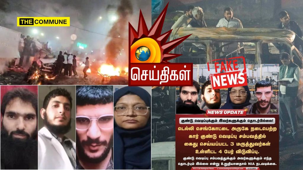 Ignoring this clear distinction, Kalaignar News attempted to mislead the public by publishing a news card featuring the photographs of the actual, hardcore terrorists – Umar Nabi, Shaheen Shahid, Adil Ahmed Rather, and Muzzamil Ganaie and falsely claiming that “everyone was released.”