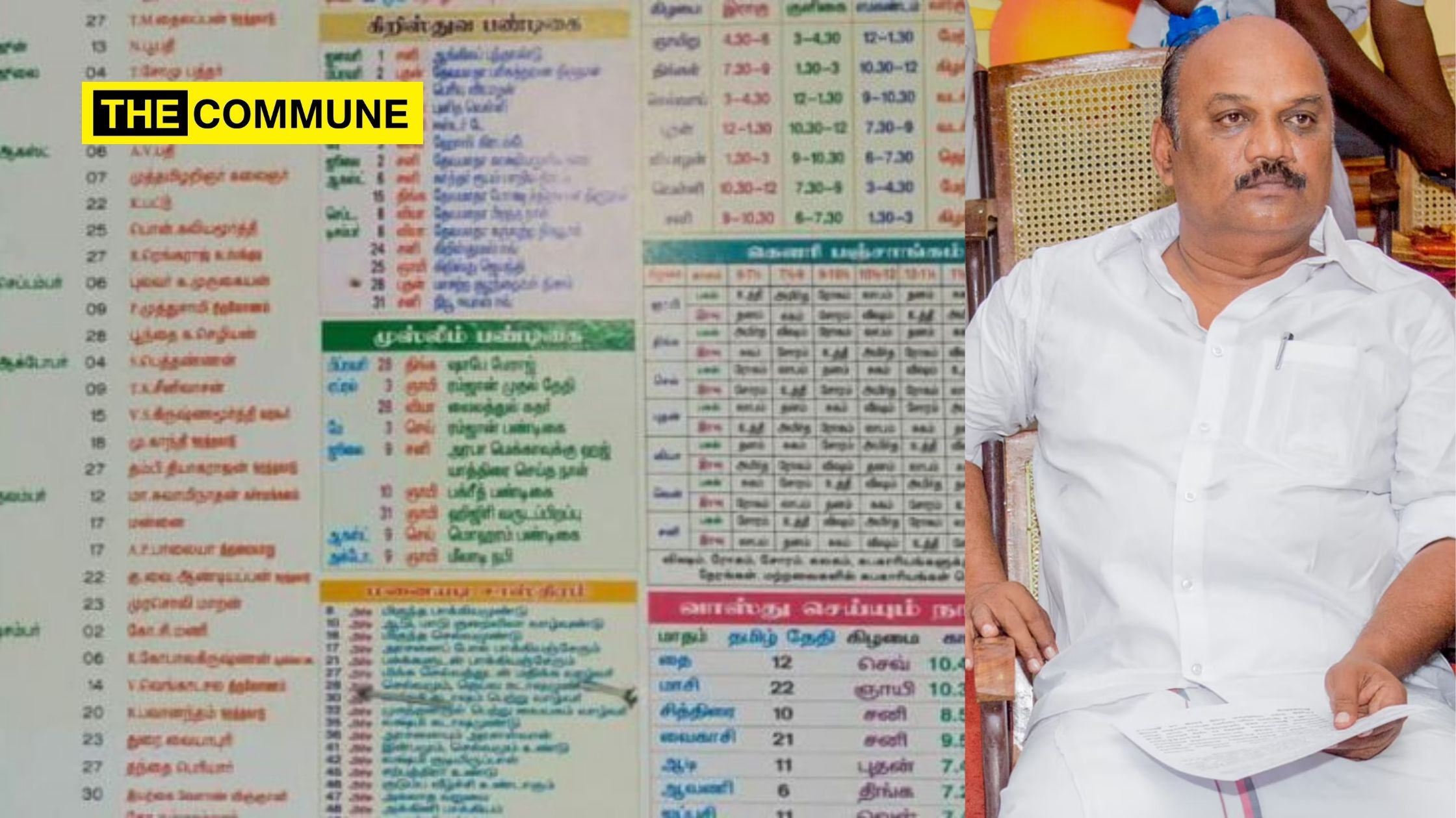 Chandrasekhar, a DMK secretary and MLA for Thanjavur district has sold a daily sheet calendar for the year 2022. The calendar mentions the birthdays of various leaders and the remembrance days of late executives and functionaries. However, Hindu festivals are referred to as ‘Government Holidays’ in the calendar. At the same time, festivals of other religions are mentioned by their names.
