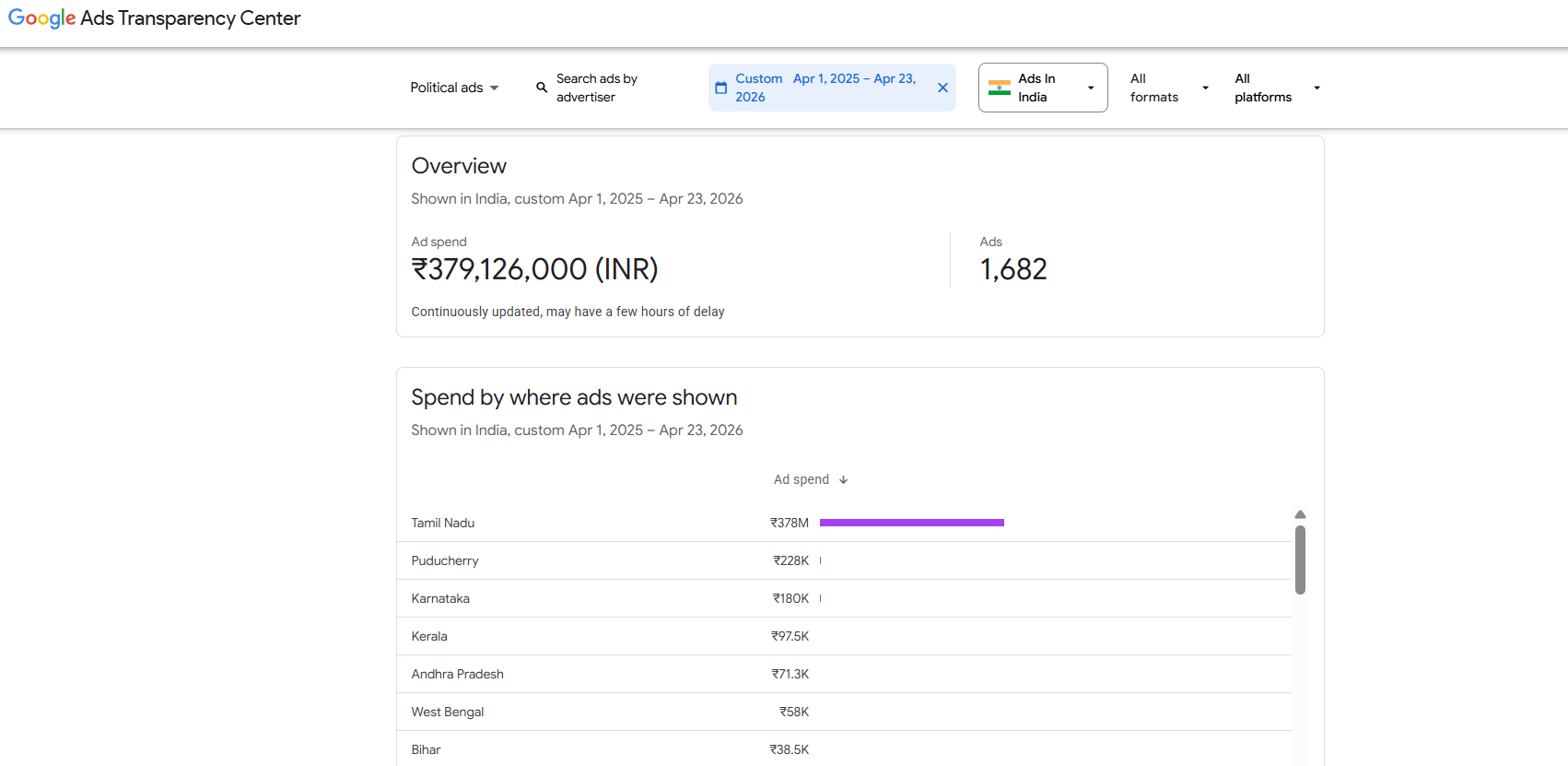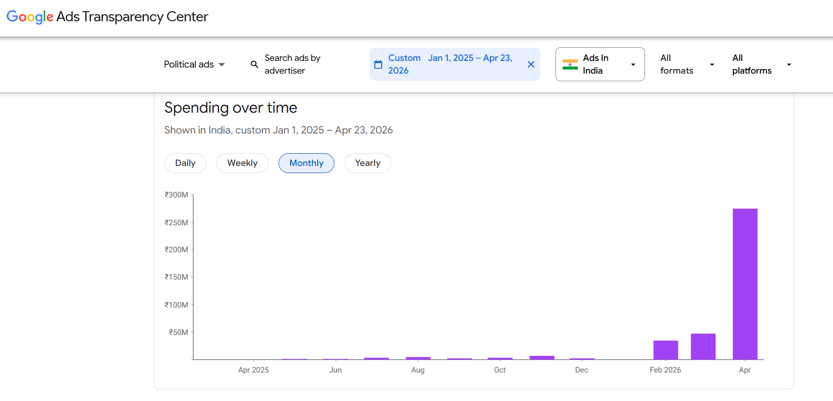 Figures from the Google Ads Transparency Center for the period between March 22 and April 23, 2026 show that Chennai-based Populus Empowerment Network (PEN) spent more on Google platforms than any political party, including the ruling BJP.