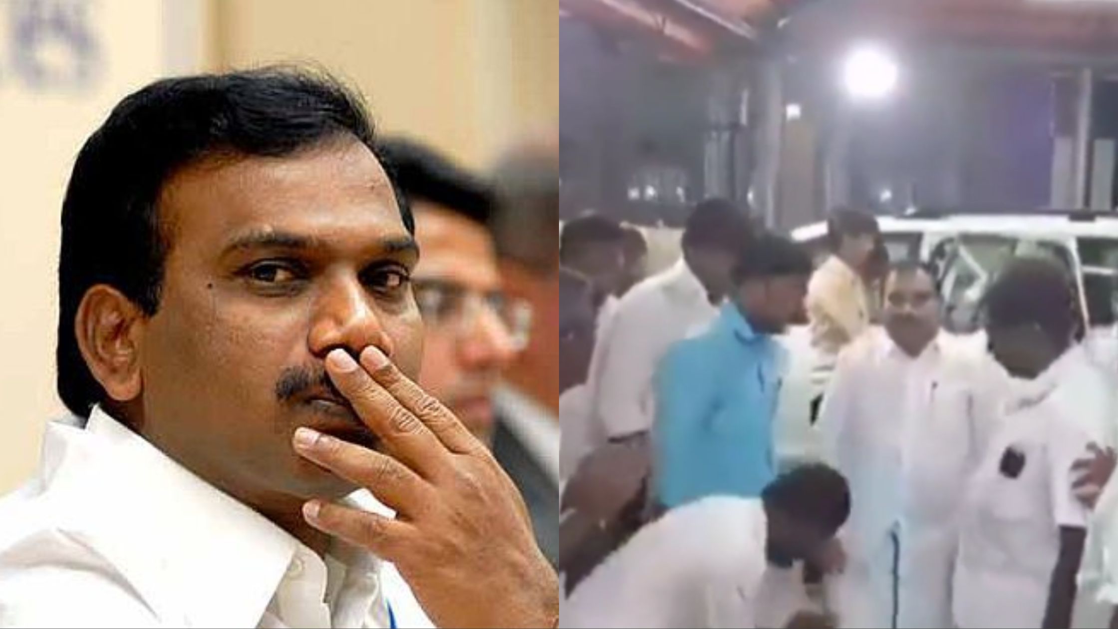 A video of men falling at the feet of DMK Lok Sabha MP A. Raja has gone viral with even the party’s IT wing promoting the same.