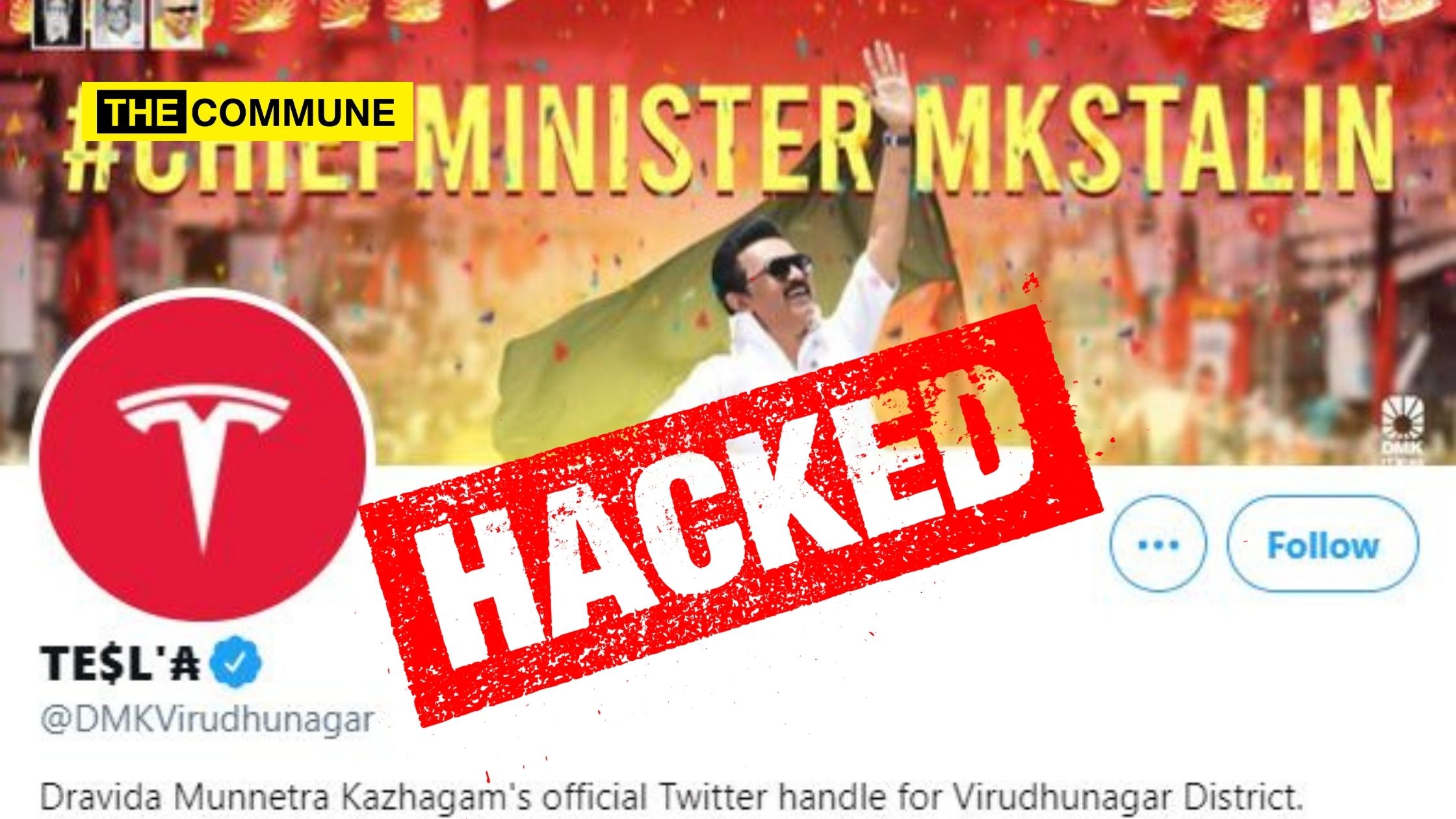 The Twitter account of DMK Virudhunagar seems to have been hacked with its account getting renamed as “TE$L’₳”.
