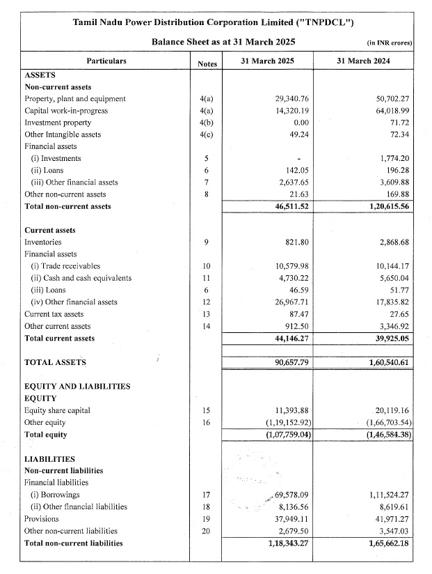 The 2024–2025 Annual Report of Tamil Nadu Power Distribution Corporation Ltd (TNPDCL), formerly TANGEDCO, has drawn attention for its depiction of the utility’s fragile financial position, with disclosures indicating structural stress, heavy indebtedness, and continued reliance on government backing.