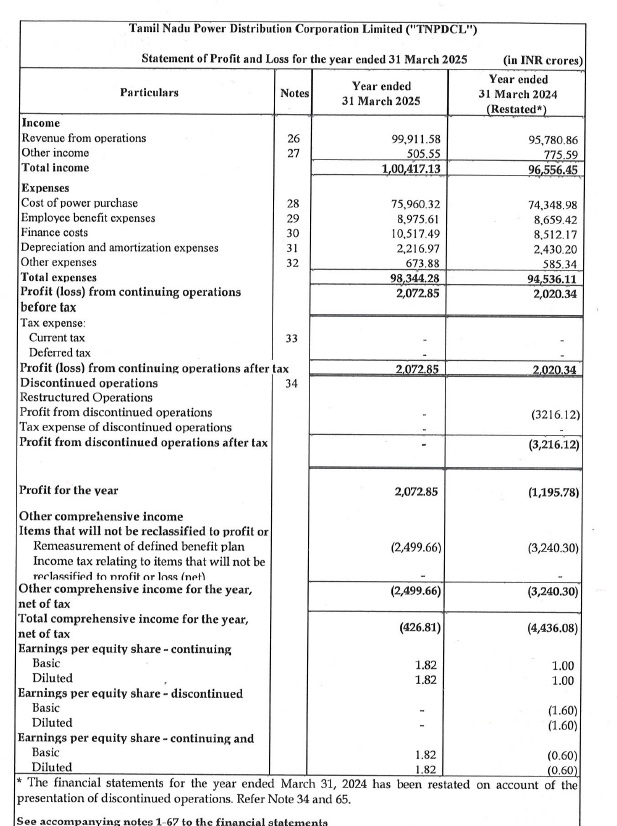 While TNPDCL has reported an operational profit for the financial year, the broader financial disclosures, including accumulated losses, liabilities, and financing costs, indicate continuing structural insolvency pressures despite accounting surpluses.