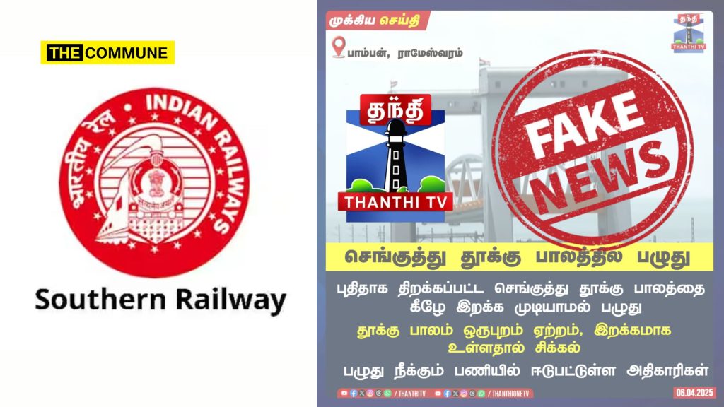Indian Railways has issued a stern fact-check against Dravidianist media outlet Thanthi TV, accusing the channel of peddling baseless rumors about the newly inaugurated Pamban Bridge, India’s first vertical-lift railway sea bridge.