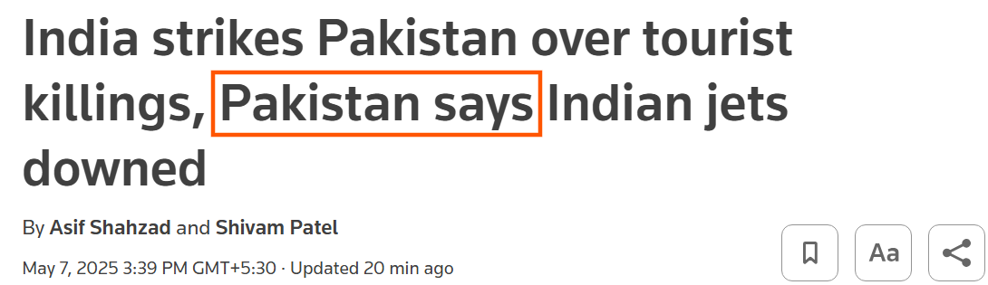 But if you look closely, all media reports clearly frame it as Pakistan’s claim—not confirmed fact.