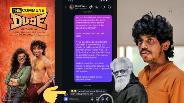 Dravidianist debut filmmaker Keerthiswaran is experiencing a rapid, self-inflicted fall from grace. Fresh off the commercial success of his film Dude, the director has managed to reveal an astonishing level of arrogance and a deeply problematic ideology, proving that financial earnings are no substitute for artistic integrity or basic decency.