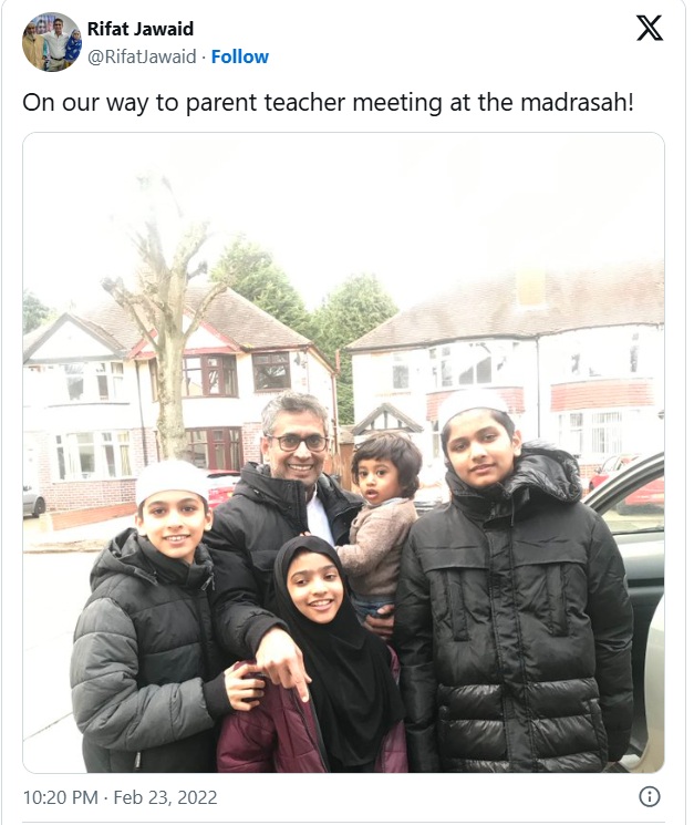 He has frequently shared images of his own children attending madarsas, presenting this as a rebuttal to criticism.