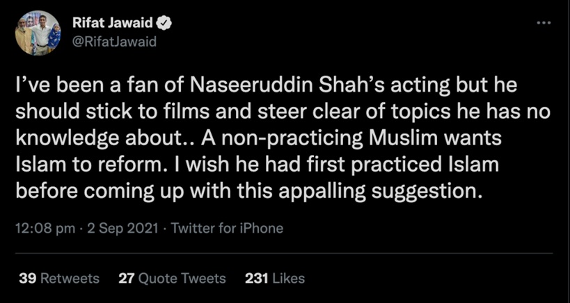 Jawaid’s reporting consistently advances a narrow ideological agenda, often portraying Indian institutions, the military, and Hindu religious expressions in a negative light. He has previously targeted public figures such as actor Naseeruddin Shah for commenting on Islamic extremism, accusing him of being a “non-practising” Muslim and questioning his right to speak on religious reform.