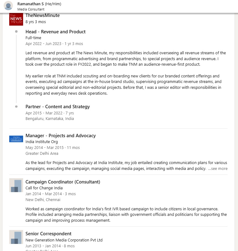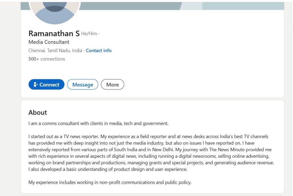 Ramanathan’s role has drawn particular attention due to his professional trajectory. He is reported to have worked as a journalist/project head with The News Minute before transitioning to a role linked to Minister Rajaa’s office.