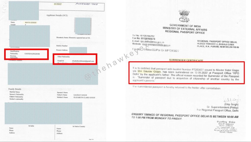 According to documents reviewed by investigators, the Gogoi couple has two children. Records examined during the probe indicate that both children are not Indian citizens. One set of documents pertains to the surrender of an Indian passport belonging to Gogoi’s son, citing acquisition of a passport from another country as the reason for surrender.