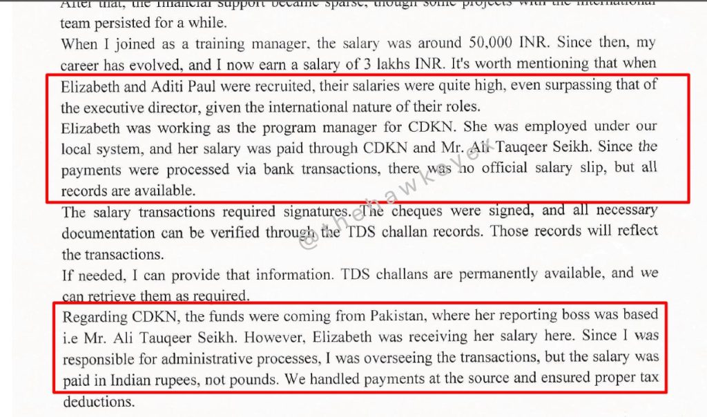 According to recorded statements, Luthra told investigators that Elizabeth Colburn received what he described as unusually high remuneration. He further stated that although she worked with Lead India, she reported to Ali Tauqeer Sheikh in Pakistan.