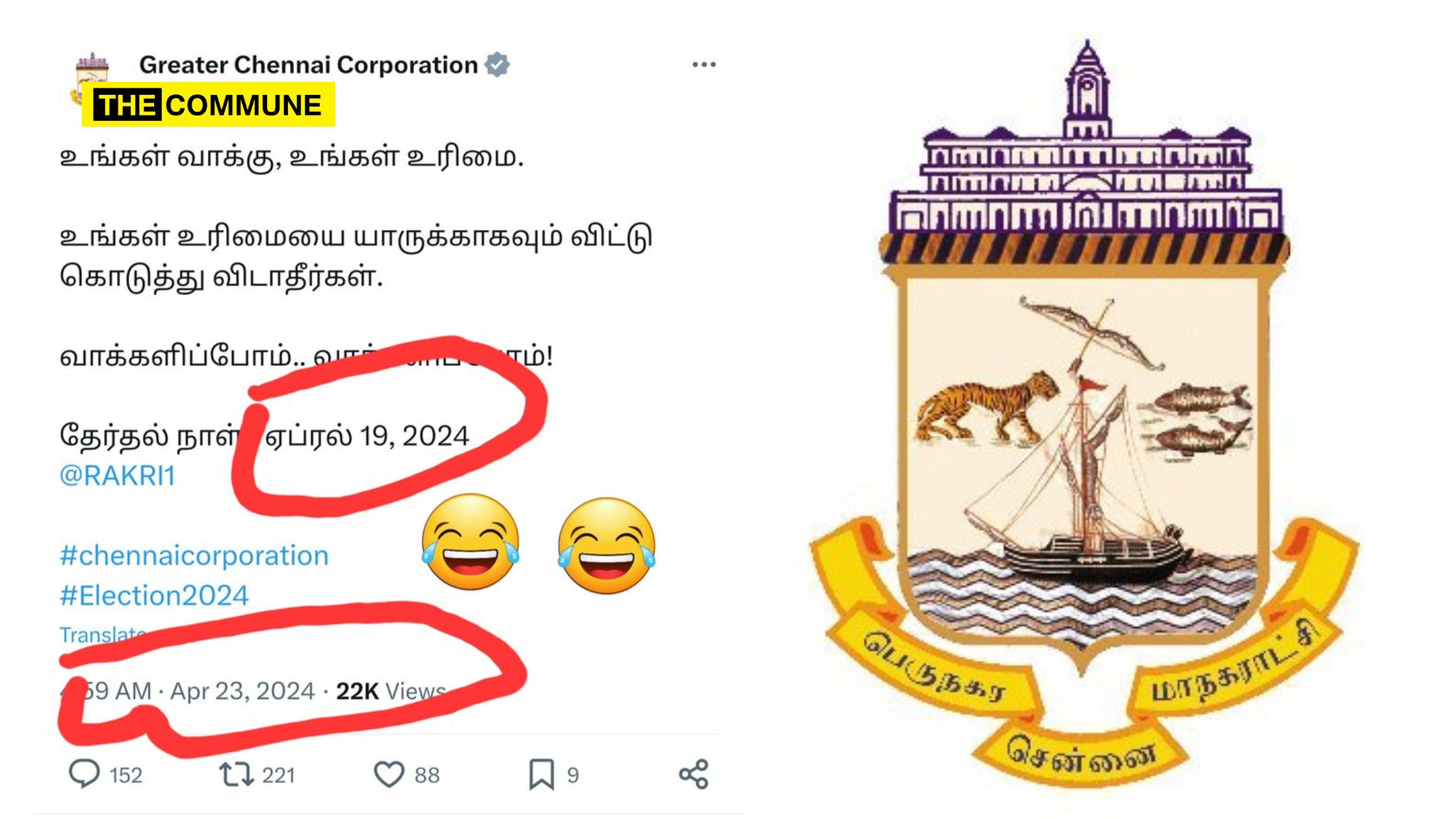 Tamil Nadu went to the polls on 19 April 2024. While the Greater Chennai Corporation’s handle did regularly share information, and alerts, and run awareness campaigns on social media, they goofed up big time.