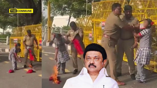 A head constable attached to the Otteri police station, Kothandapani, once again staged a protest in 2026, escalating his demonstration by attempting to burn a political party flag, in continuation of his long-running grievance over the medical condition of his daughter.