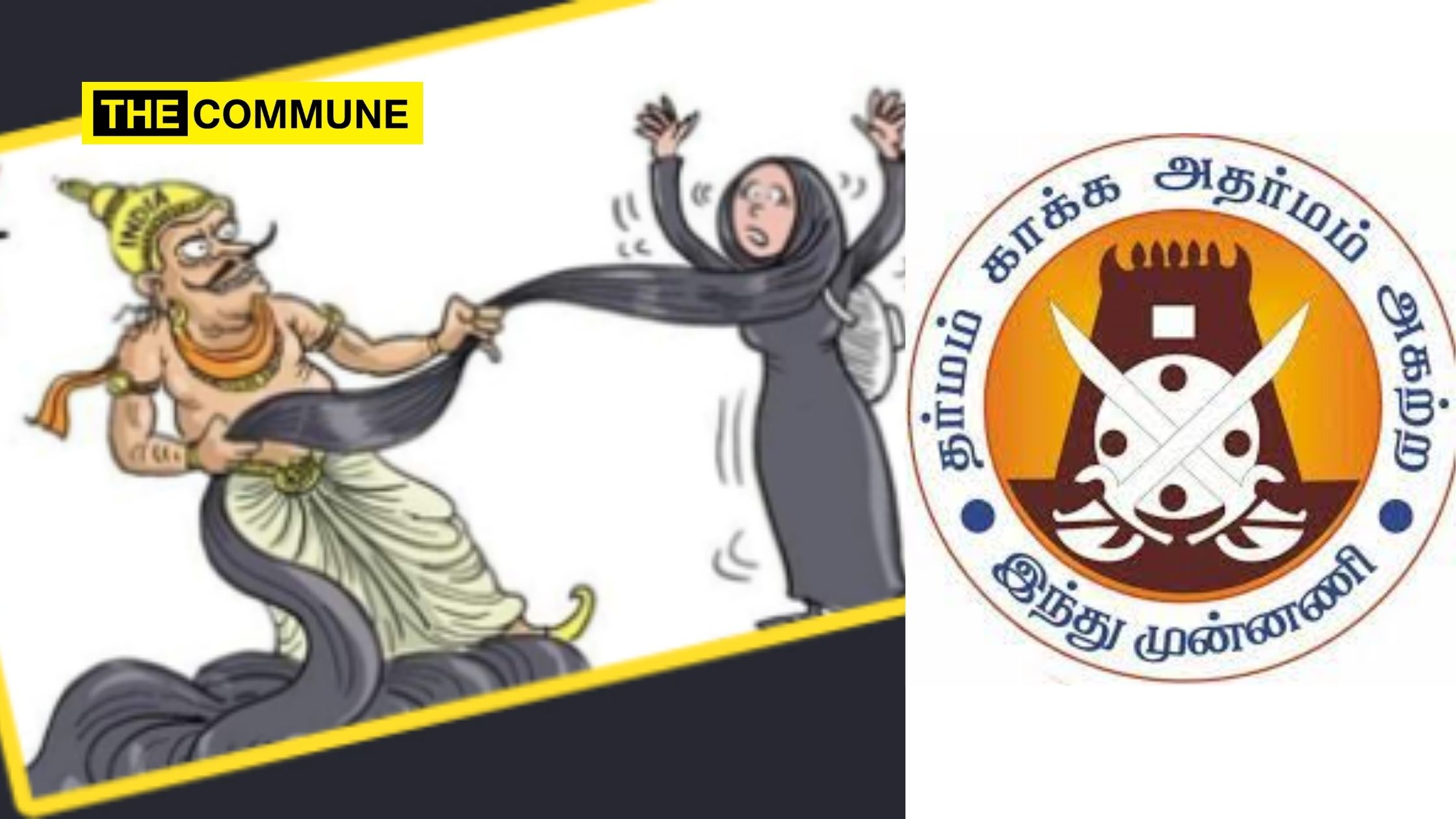 In line with this, a Communist Party member named Saminathan from the Gudiyatham area of ​​Vellore district, spread a cartoon on his WhatsApp groups. The cartoon is illustrated in such a way that it looks like a Hindu man (looking like a character from Hindu epics) is disrobing a woman wearing a Hijab. Given that this cartoon has provoked communal disturbance in the area, the Hindu Munnani have lodged a complaint with the local police, to take action against this individual.