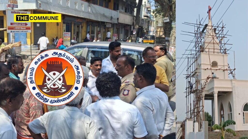 Concerned locals approached Hindu Munnani for assistance. In response, officials from the organization, led by Kanchi Divisional Secretary R.D. Mani, visited the site and surrounded the church. They lodged a formal complaint with the Uthiramerur Tehsildar, who then issued an order citing potential law and order issues. The Tehsildar’s order denied permission to open the church, as it was being constructed on government land without official consent.