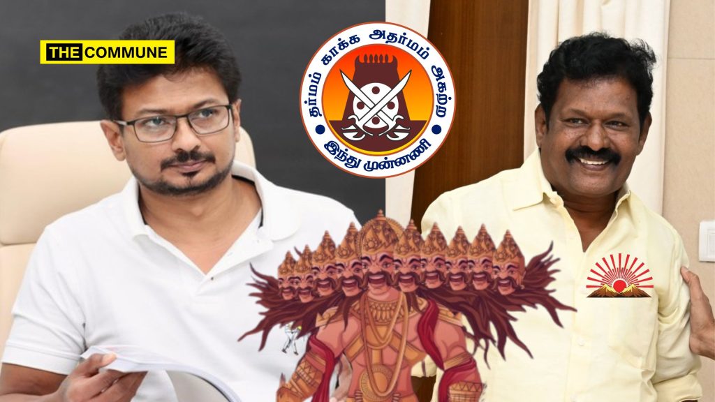 Hindu Munnani has sharply criticized DMK MLA Thiyagarajan for his alleged controversial remarks during a session of the Tamil Nadu Legislative Assembly, where he likened Deputy Chief Minister Udhayanidhi Stalin to the ten-headed demon king Ravana, alleging that he had come to destroy Sanatana Dharma (Hinduism).