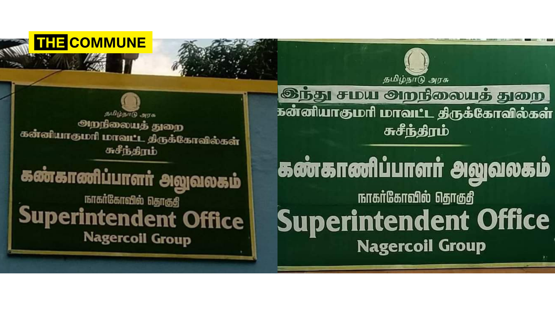 “Hindu” word removed from HR&CE dept board in Nagercoil, added after protest from Hindu leaders