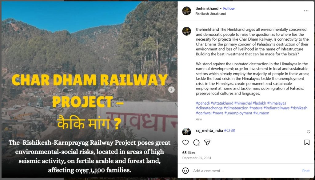 ‘The Himkhand’ has also been at the forefront of opposing key development projects like the Char Dham Railway project under the guise of environmentalism.