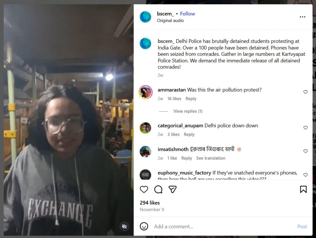 These are protesters who were demonstrating at India Gate against pollution and expressing support for the Naxalite leader Madvi Hidma
